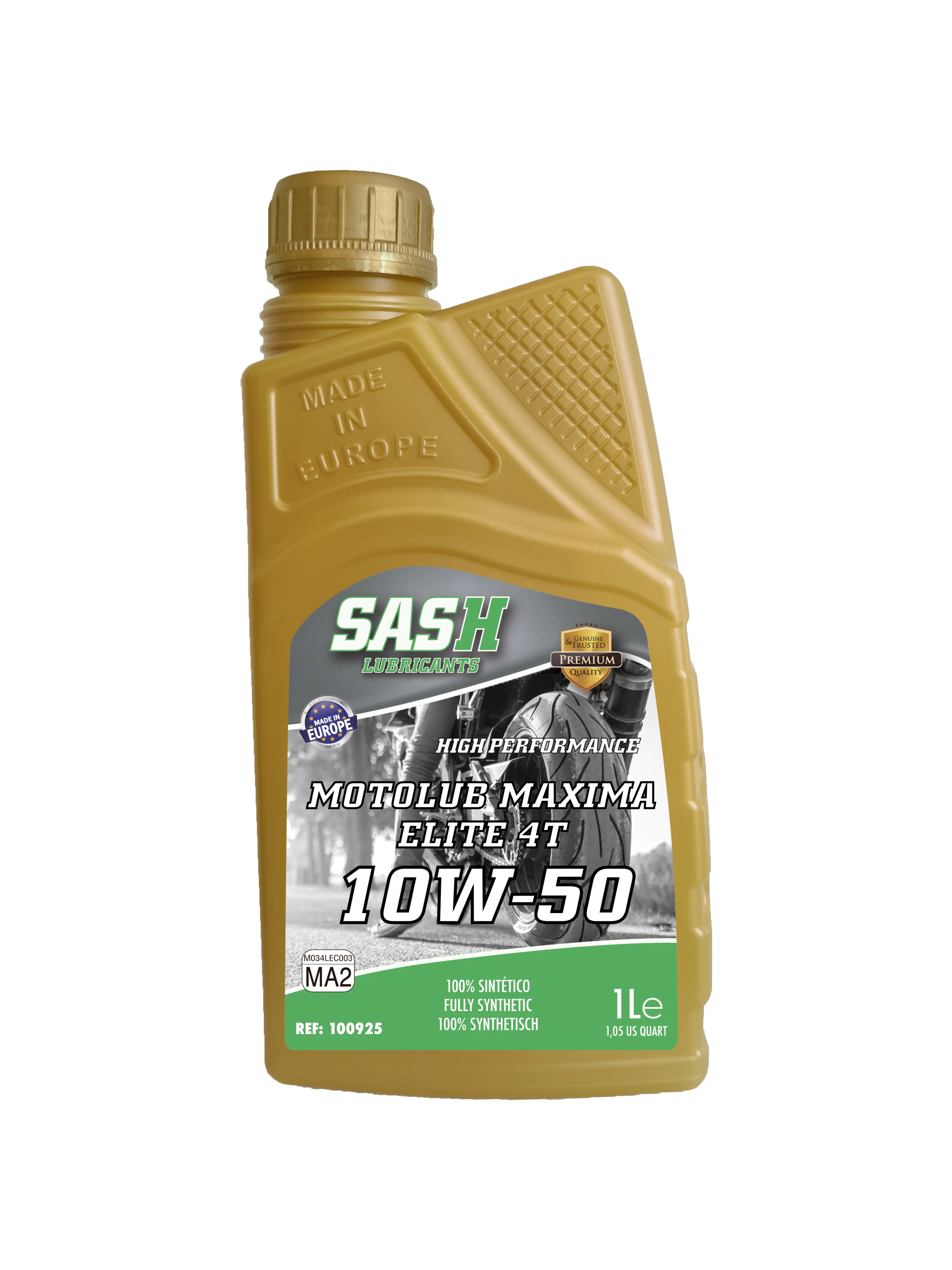 Es un lubricante 100% sintético de calidad Premium fabricado con bases sintéticas seleccionadas como son la tipo PAO y del grupo III, y los aditivos más modernos del mercado. Gracias a esta selección de materias primas obtenemos un lubricante de unas prestaciones altísimas para la última generación de motores de 4 tiempos de motocicletas.