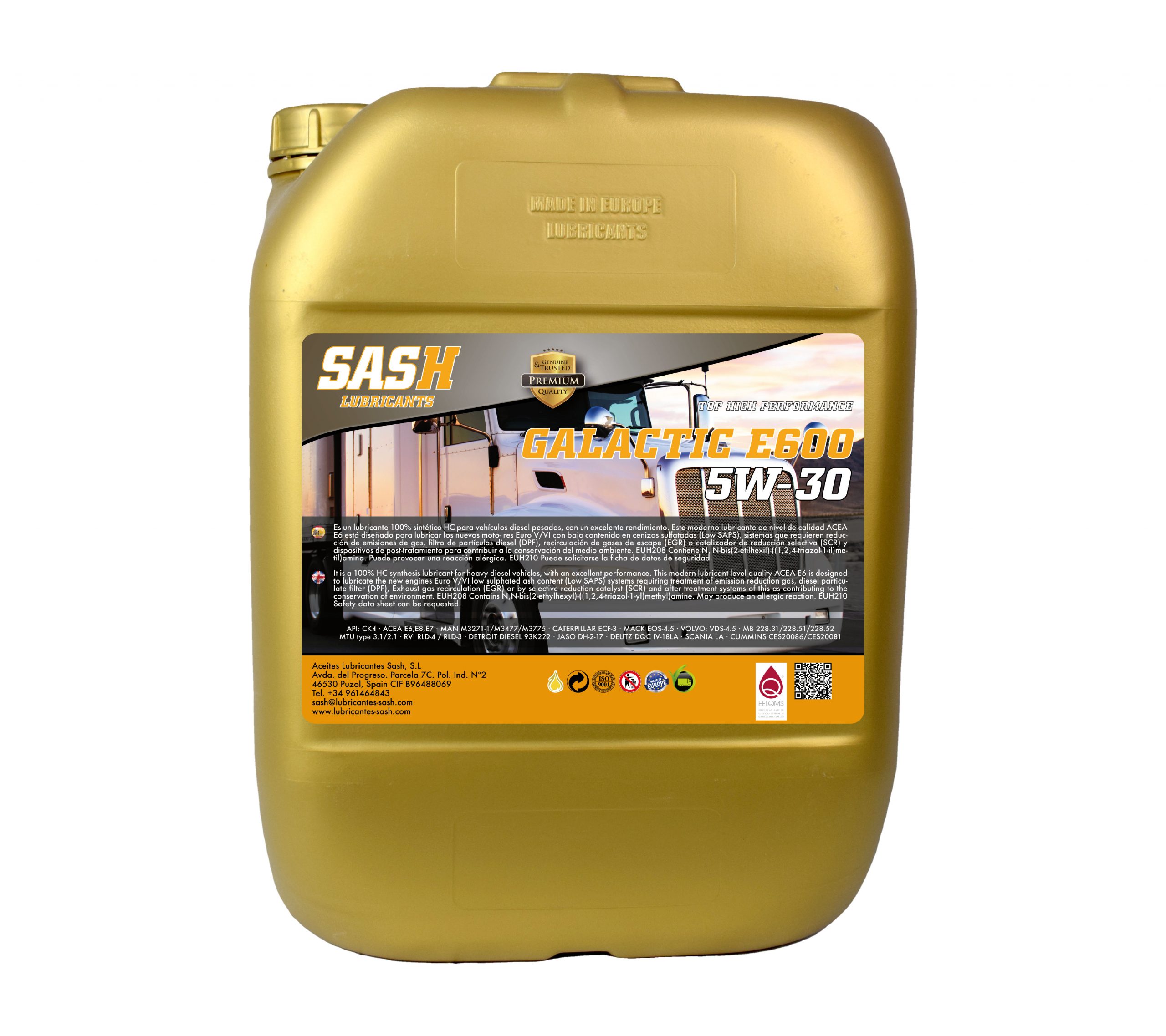 É um lubrificante 100% sintético HC para veículos diesel pesados, com um excelente rendimento. Este lubrificante moderno de nível de qualidade ACEA E6 foi concebido para lubrificar os novos motores Euro V/VI com baixo teor de cinzas sulfatadas (Low SAPS), sistemas que requerem redução de emissões de gás, filtro antipartículas (DPF), recirculação de gases de escape (EGR) ou catalisador de redução seletiva (SCR) e dispositivos de pós-tratamento para contribuírem para a conservação do meio ambiente.
